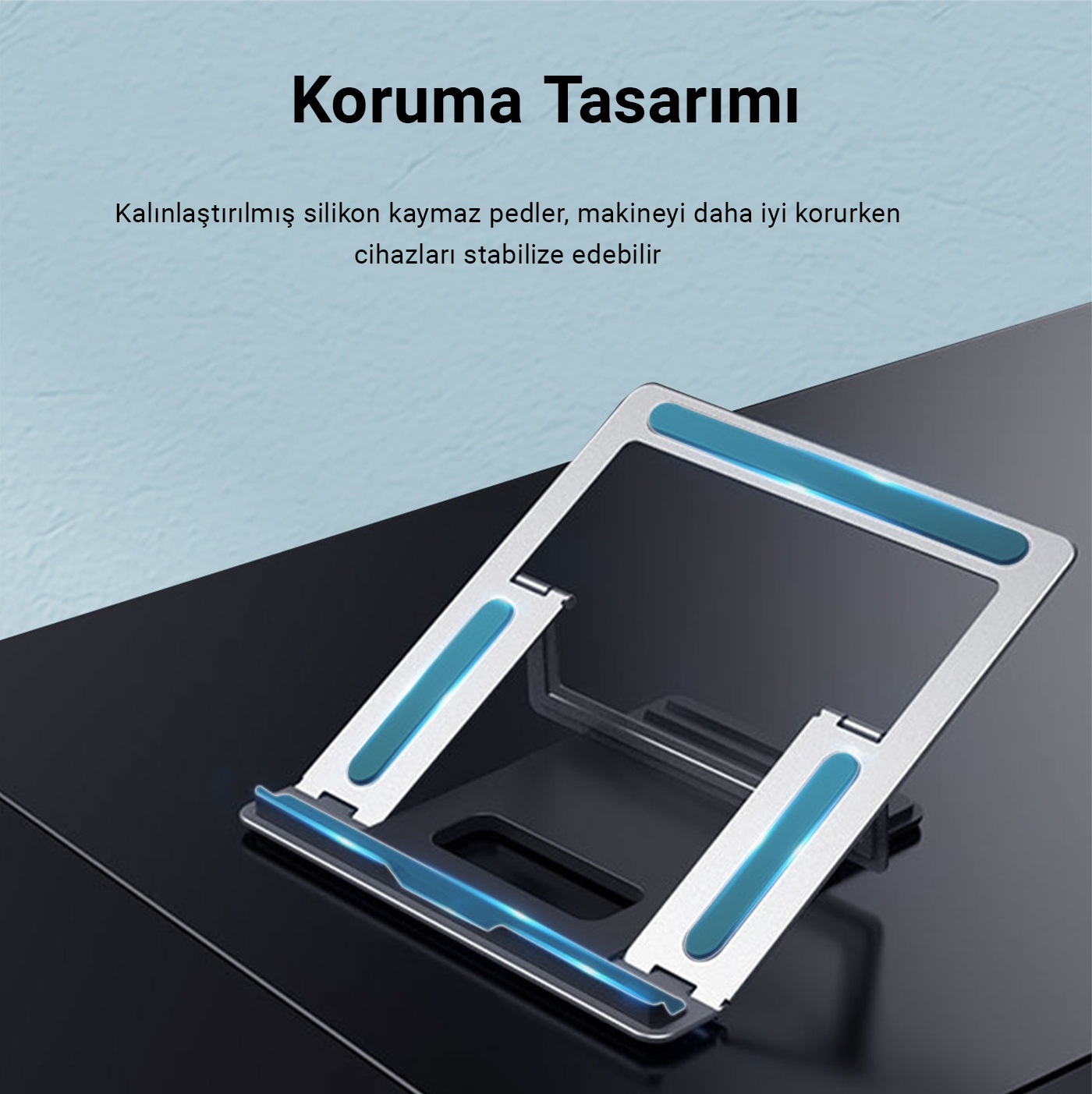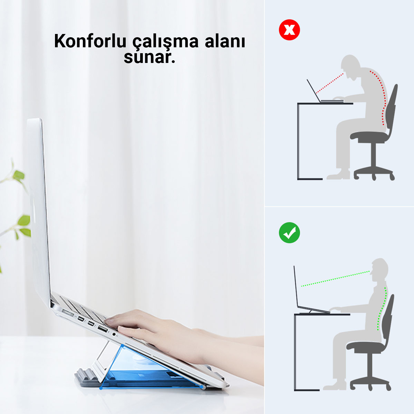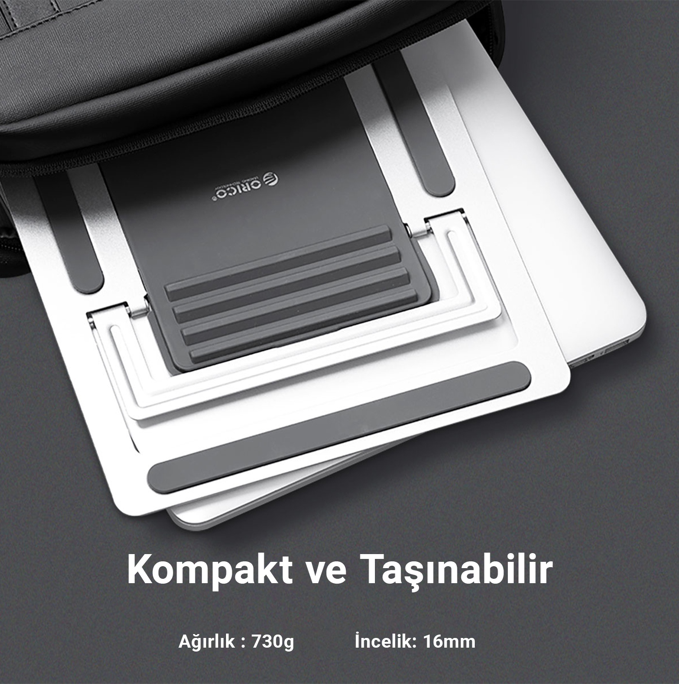 Orico CCT8 Katlanır Ayarlanabilir Masaüstü Laptop Notebook Standı, ihtiyacınıza göre rahat bir çalışma açısı sunar. Ergonomik tasarımı sayesinde izlemeyi ve yazmayı kolaylaştırarak boyun, omuz ve omurga ağrısını hafifletir. 10kg kadar taşıma kapasitesi sağlar. Kaymaz silikon pedler, cihazlarınızı çizilmelere ve kayıp düşme durumlarına karşı korur. Eğim açısı ve açık tasarımı sayesinde dizüstü bilgisayarınızın aşırı ısınmasını önlemek için mükemmel havalandırma ve hava akışı sağlar. Stand üzerine 17” inch boyutlarına kadar notebook, tablet, laptop konumlandırabilirsiniz.
