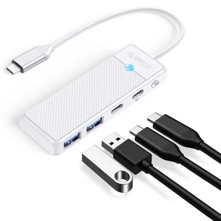 Orico 4 Portlu Type-C to USB 3.0 / Type-C PD 100W Yüksek Hızlı 5Gbps HUB Çoklayıcı Beyaz, yetersiz USB veya Type-C portuna sahip olan cihazlarınız için kullanabileceğiniz Type-C bağlantılı yüksek hızlı bir USB çoklayıcıdır. 5Gbps veri aktarımı sayesinde gecikme olmadan bağladığınız cihazları kullanabilirsiniz. Aynı anda 2,5 inç iki adet HDD veya SSD kutusu (1TB’a kadar) bağlantısını destekler. PD 100W güç aktarımına sahip Type-C portu sayesinde bilgisayarınızı şarj ettiğiniz Type-C portu üzerinden şarj işlemine devam ederken cihazlarınızı bağlayabilirsiniz. Kompakt tasarımı sayesinde masanızın üzerinde yer kaplamaz ve kolayca taşıyabilirsiniz. ABS malzemeden tasarlanan dış kasa darbelere karşı dayanıklıdır.
