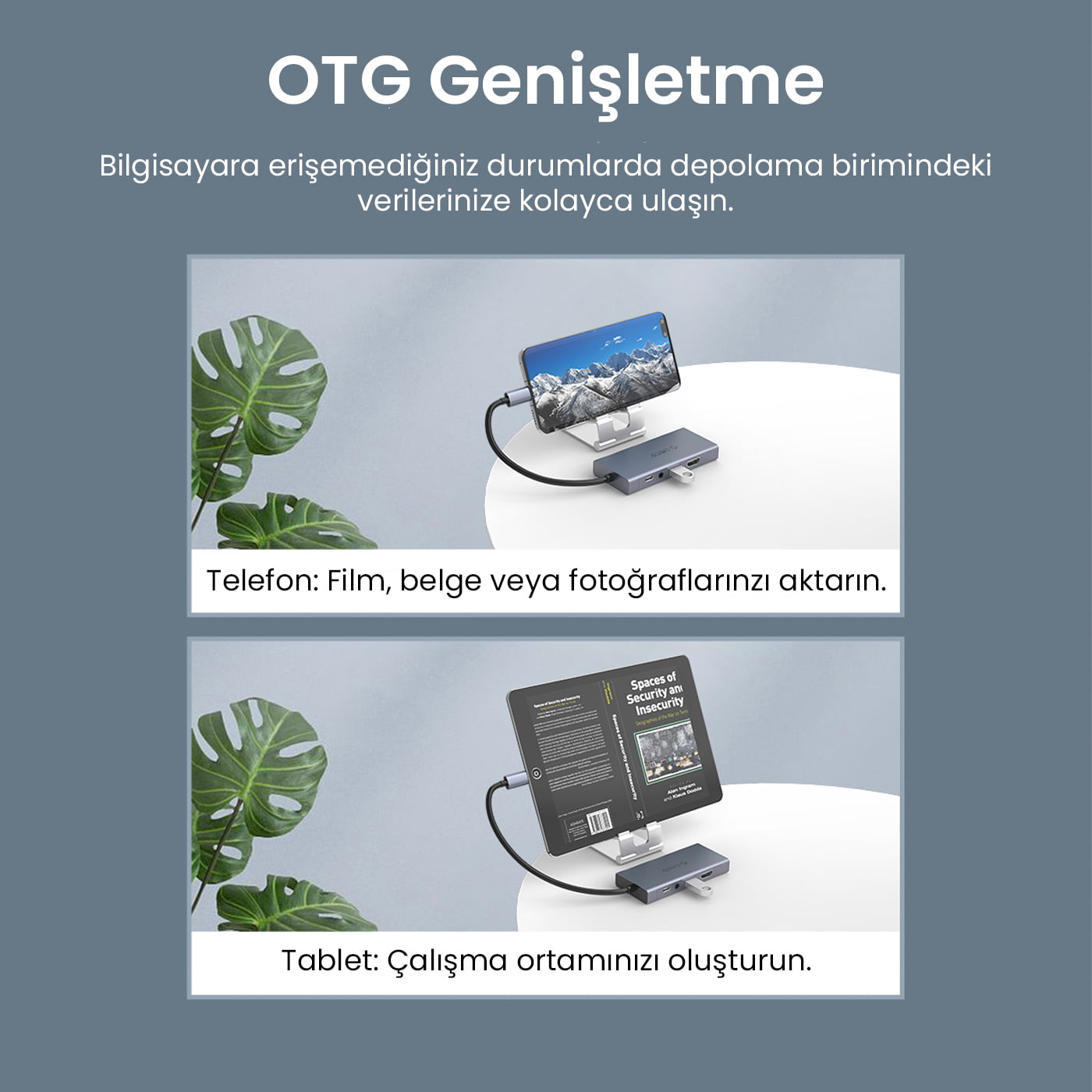 Orico 4 Portlu Type-C Bağlantılı USB3.2 GEN1 TF/SD Kart Okuyucu Çoklayıcı HUB