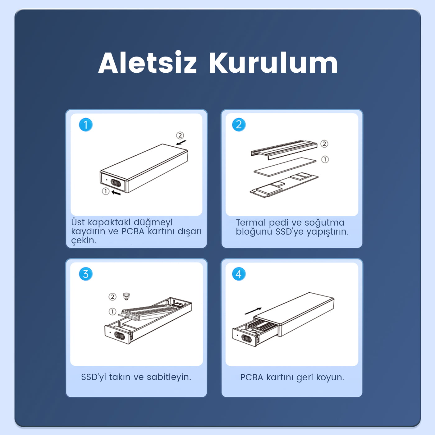 • Taşınabilir Depolama Çözümü: NGFF SSD’lerinizi harici olarak kullanabilir, verilerinizi depolayabilirsiniz.