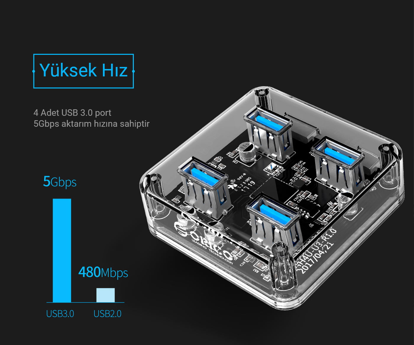 ORICO – Şeffaf 4 bağlantı noktası USB 3.0 HUB