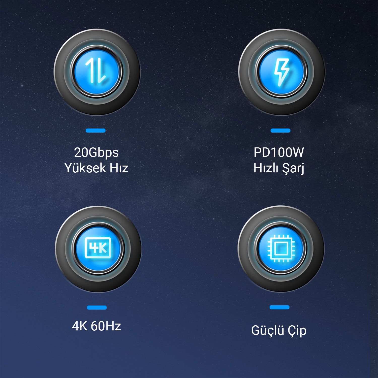 Orico Type-C USB3.2 Gen2*2 PD100W 5A 20Gbps 4K 60Hz Hızlı Şarj Kablosu, Type-C bağlantısı bulunan cihazlarınız arasında veri aktarımı görüntü aktarımı gibi işlemler için kullanabilirsiniz. 20Gbps aktarım hızı sayesinde SSD veya HDD kutusundan veri aktarma işlemleri gibi işlemleri çok hızlı bir şekilde gerçekleştirerek zamandan tasarruf edebilirsiniz. 100W / 5A güç akışını ve hızlı şarjı destekler böylece laptop gibi yüksek güç isteyen cihazlarınızı bu kablo yardımı ile şarj edebilirsiniz. Kablonun 4K 60Hz görüntü aktarım desteği bulunmaktadır bu özellik sayesinde Type-C bağlantılı monitörünüze yüksek çözünürlüklü görüntü aktarabilirsiniz böylece oyunlarda rakiplerinizden bir adım önde olursunuz. Örgü kumaş kablo ve alüminyum alaşım korumalı konnektörler sayesinde kablo en zorlu şartlara karşı dayanıklıdır böylece kablo eğilme bükülme gibi durumlardan etkilenmez. Altın kaplama konnektör uçları oksitlenmeye karşı dirençlidir. Bu güçlü ve dayanıklı kablo bir E-Marker çip ile desteklenmiştir. E-Marker çip bağlantı sağlanan cihazlar ile iletişime geçerek güvenli enerji ve veri aktarılmasını sağlar.