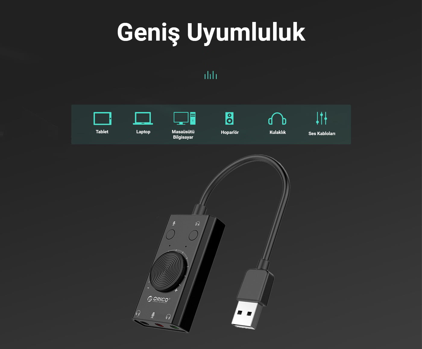 Orico USB 2.0 TRS / TRRS 3.5mm Ses Ayar Tekerlekli Jack Girişli Harici Ses Kartı, ses kartı arızalı olan veya kötü ses çıkışı veren bilgisayarlarınız için etkili bir çözümdür. USB portu üzerinden bilgisayarınıza bağlayarak ses konusunda yaşadığınız sorunu hızlıca düzeltebilirsiniz. TRS ve TRRS desteği sayesinde üzerinde bulunan 3 adet 3.5mm Jak girişinden mikrofon, kulaklık, mikrofonlu kulaklık veya headset kullanabilirsiniz. USB2.0 bağlantısı sayesinde stabil ve kesintisiz bir aktarım sağlar. Ortada bulunan ses ayarlama tekerleği sayesinde ses ayarınızı yapabilirsiniz. Üst kısımdaki tuşlardan sustur özelliklerini kullanabilirsiniz. Mavi led gösterge bağlantı sağladığını kırmızı led gösterge ise sustur özelliğini gösterir. Sürücü kurulumu olmadan tak çalıştır olarak kullanabilirsiniz. ABS malzemeden yapılan kasa darbelere karşı dayanıklıdır.