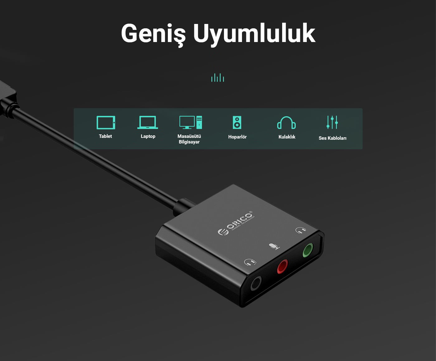 Orico USB 2.0 TRS / TRRS 3.5mm Jack Girişli Harici Ses Kartı, ses kartı arızalı olan veya kötü ses çıkışı veren bilgisayarlarınız için etkili bir çözümdür. USB portu üzerinden bilgisayarınıza bağlayarak ses konusunda yaşadığınız sorunu hızlıca düzeltebilirsiniz. TRS ve TRRS desteği sayesinde üzerinde bulunan 3 adet 3.5mm Jak girişinden mikrofon, kulaklık, mikrofonlu kulaklık veya headset kullanabilirsiniz. USB2.0 bağlantısı sayesinde stabil ve kesintisiz bir aktarım sağlar. Sürücü kurulumu olmadan tak çalıştır olarak kullanabilirsiniz. ABS malzemeden yapılan kasa darbelere karşı dayanıklıdır.