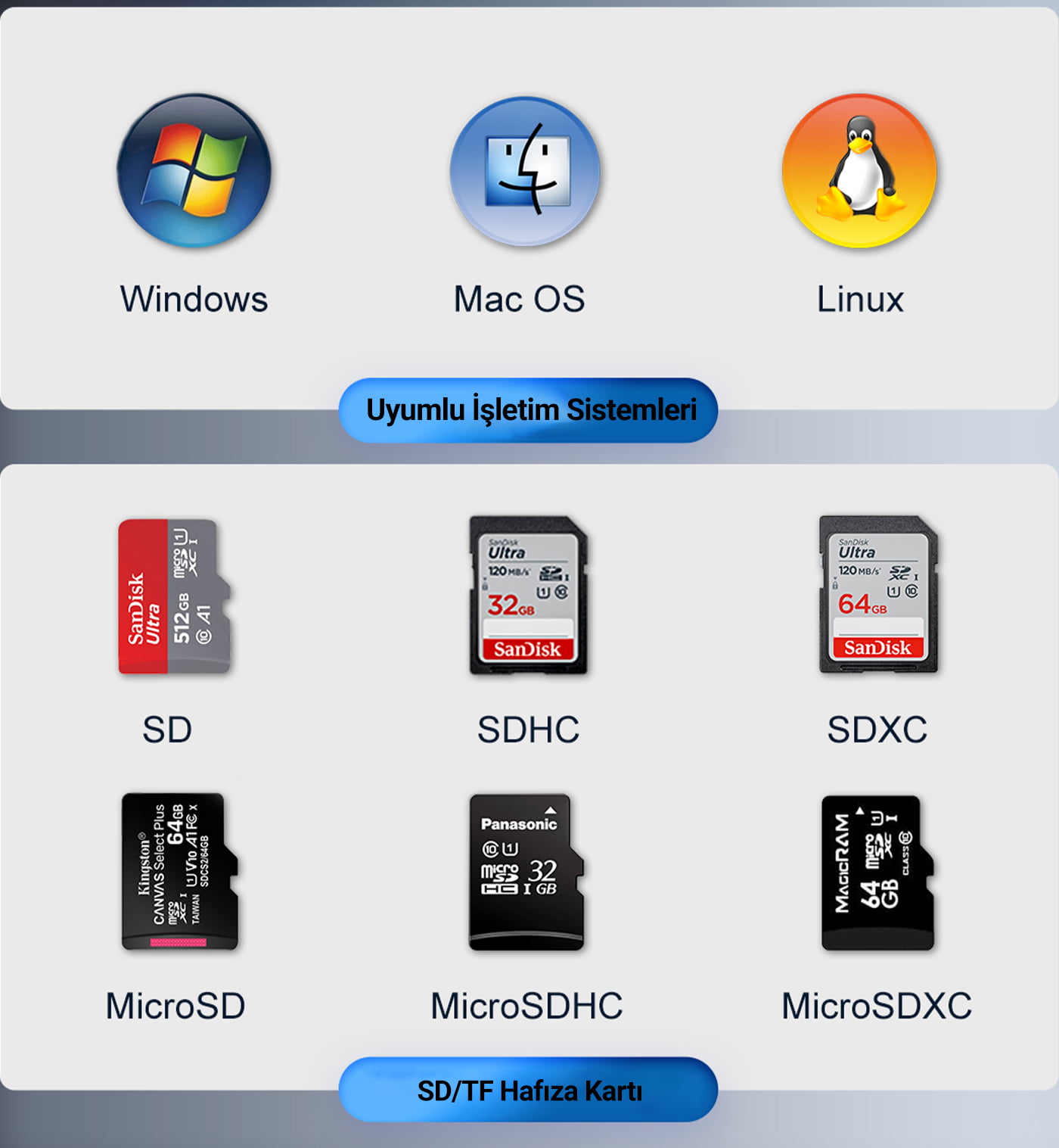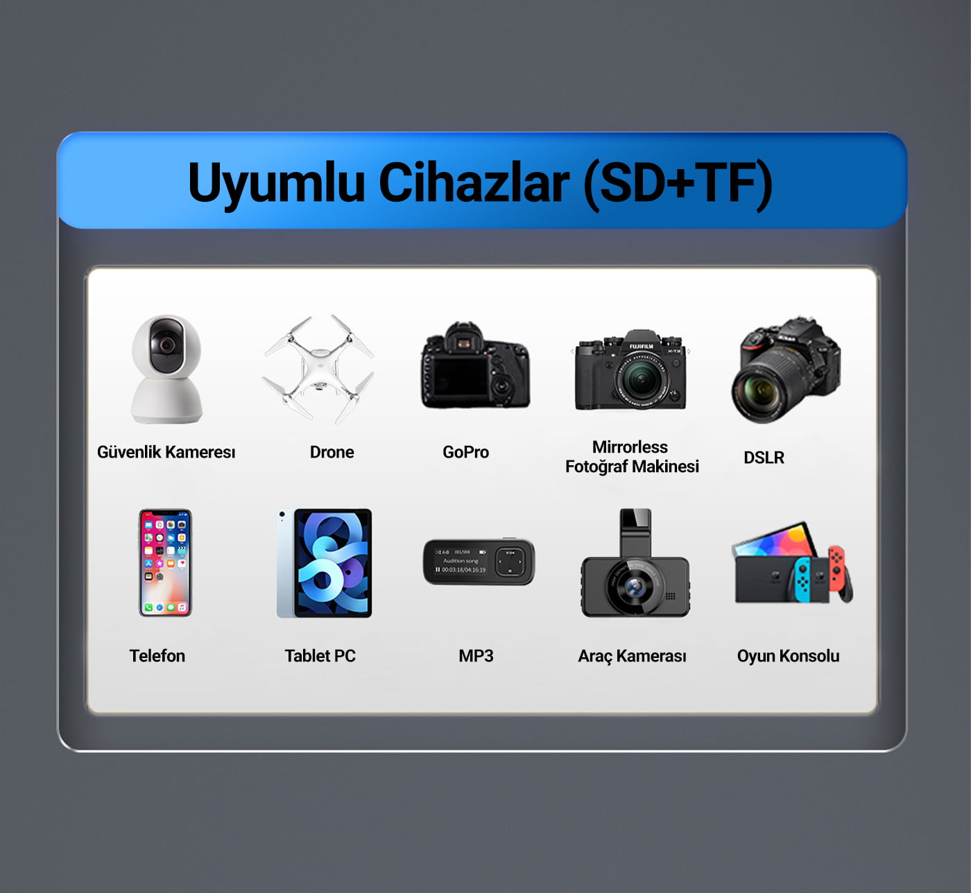 Orico USB 3.0 Type-C SD TF Micro SD Kart Okuyucu, USB 3.0 özelliği ile 5Gbps’ye kadar hızlı veri aktarımı sağlar. Hafıza kartlarınızı USB/Type-C uyumlu PC’ler, dizüstü bilgisayarlar, cep telefonları ve OTG içeren tabletlerde veri aktarımı için kullanılabilirsiniz. Bilgisayar ve laptoplarınızda aynı anda SD ve Micro SD kart slotu kullanılabilir. USB / Type-C kart okuyucu, büyük kapasiteli SD, SDHC, SDXC, RS-MMC, MMC, Micro SD, Micro SDHC, Micro SDXC ve UHS-I kartları dahil olmak üzere hafıza kartlarını destekler. Bilgisayar veya tabletleriniz herhangi bir kurulum yapmanıza gerek yok tak çalıştır olarak kullanıma hazırdır.